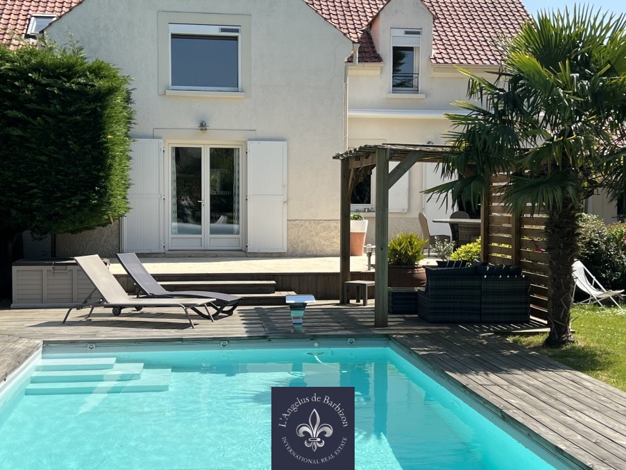 Vendu par l’agence -Aux alentours de Barbizon 8 mn -Magnifique maison moderne pour 180 m2 habitables sur un superbe terrain de 1657 m2 clos .Cette maison comprenant: une belle entrée, une réception de 50 m2 dominant sur le jardin , une cuisine aménagée et équipée ouverte sur le séjour et piscine, une suite parentale avec sa salle de douche/wc, dressing, , une arrière cuisine, wc.1er étage : Un grand palier utilisé en bureau surplombant sur le magnifique séjour, trois chambres, une salle de bain et douche,wc.un sous sol partiel : Une grande pièce ou il y a le local technique de la piscine et vide sanitaire, une cave.Un garage, une buanderie / chaufferie.Abris de jardin.une piscine de 10 x4 mètres carrés chauffée au sel.Assainissement collectif.Venez découvrir cette superbe maison qui est au calme et très lumineuse.Commerces à 2km.Rare sur le marché.